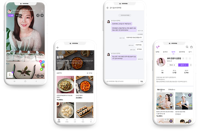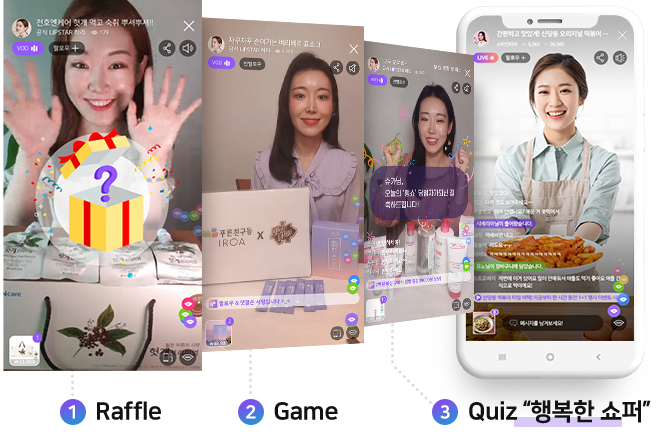 라이브 방송 플랫폼, 채팅, Raffle, Quiz, 상품 쇼핑플랫폼, 팬보드, Store, 한국화장품을 왕홍을 통해 중국에 LIVE로 판매