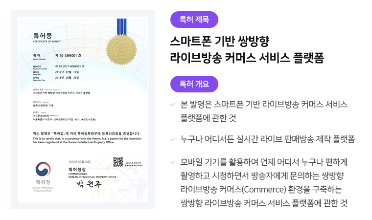라이브방송 서비스특허등록
